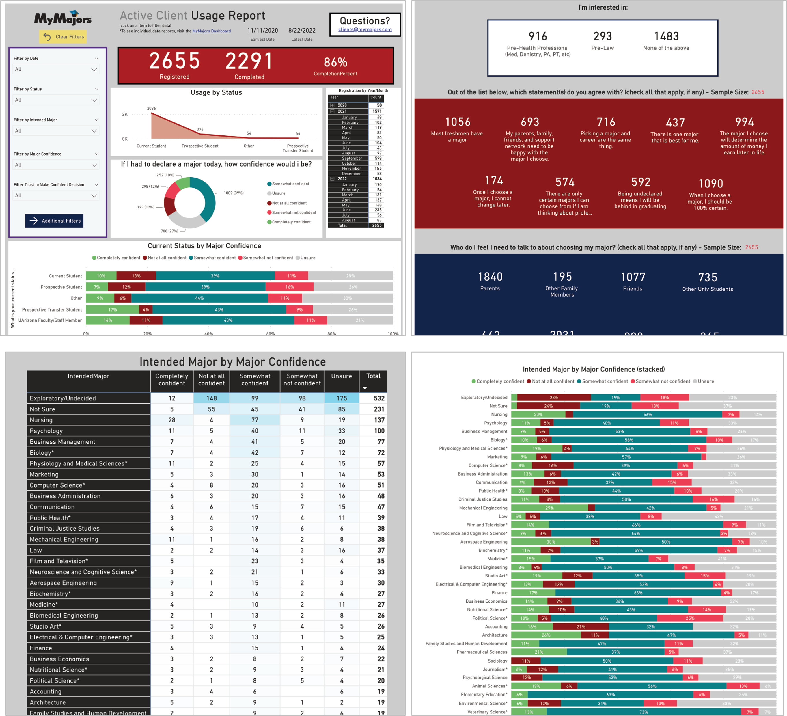 Client result: The A Center at the University of Arizona utilizes MyMajors in the major exploration process, including major exploration appointments, and a major exploration course.