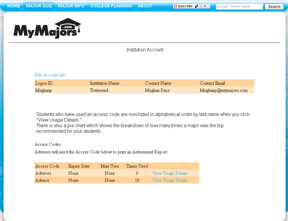 MyMajors is free for High School counselors who sign up for a counselor account through MyMajors.com. Here’s how to login: