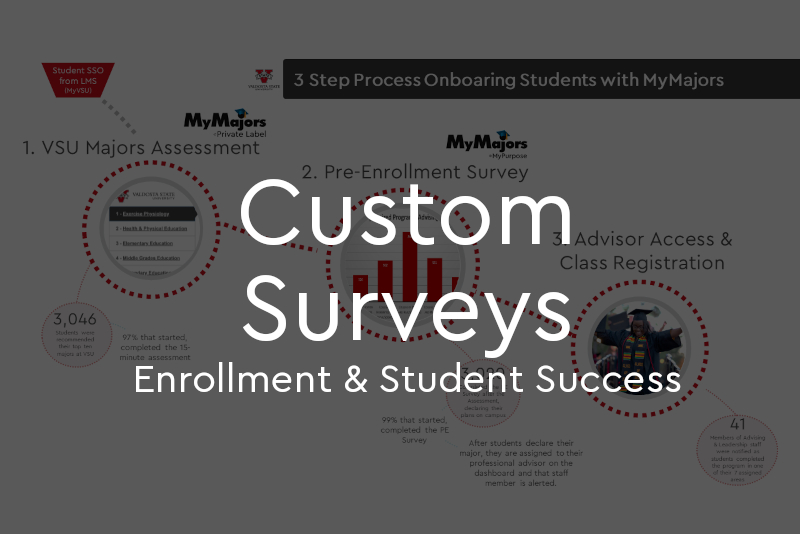 The simple act of engaging students to explore and affirm their majors on your campus and career pathways will increase enrollment conversions, persistence, and student success initiatives.