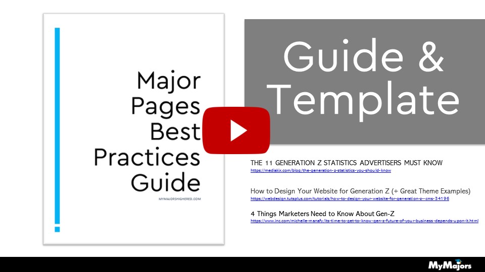 Top 6 Tips for Building Engaging Major Pages for Prospective and Current Students. Includes a template for working with faculty and staff.