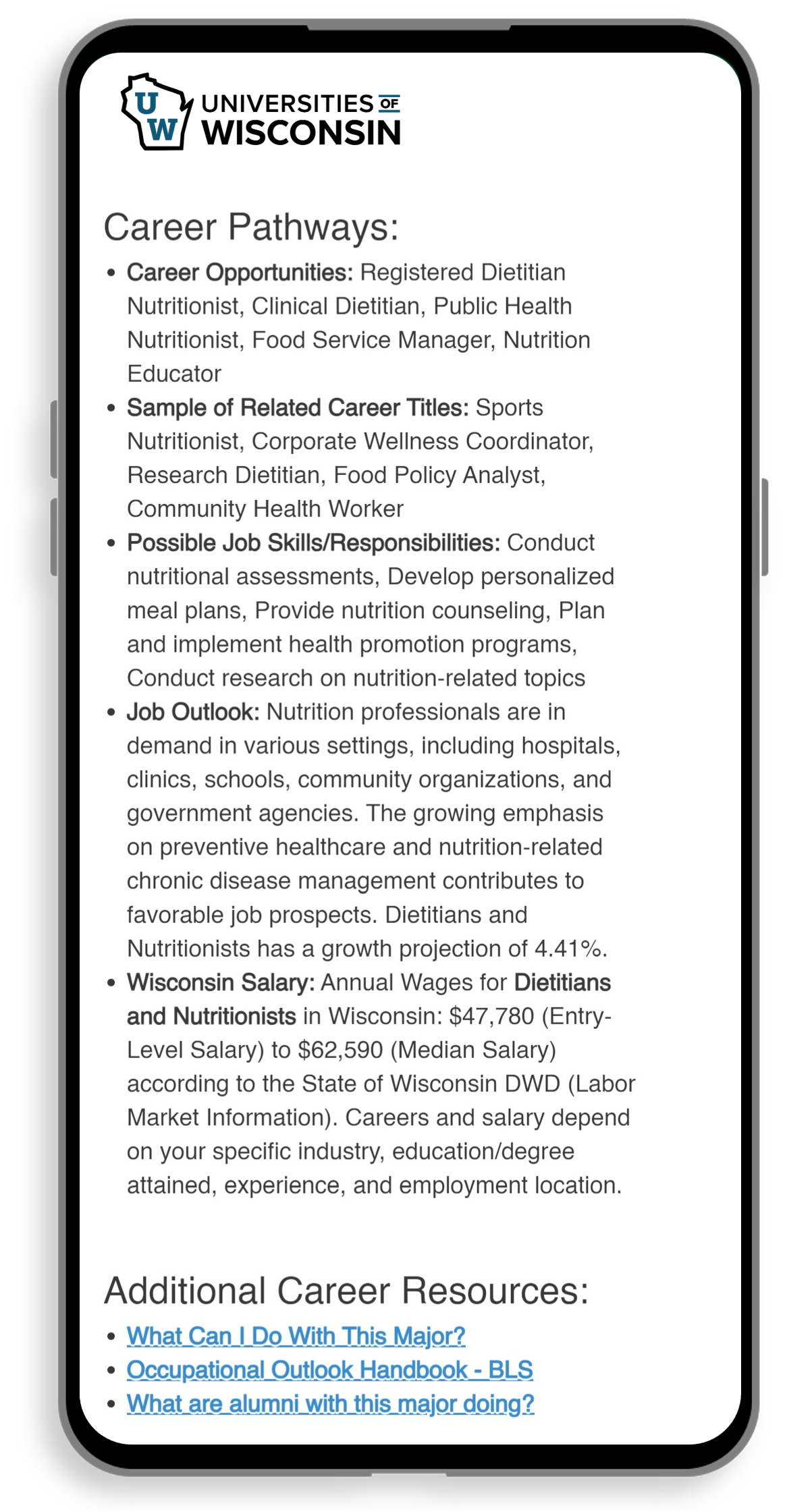 Majors are not Careers. MyMajors first suggests students majors to explore and associated career pathways that are a fit. Job data, state starting salary, job growth, and resources can be embedded inside your customized program.