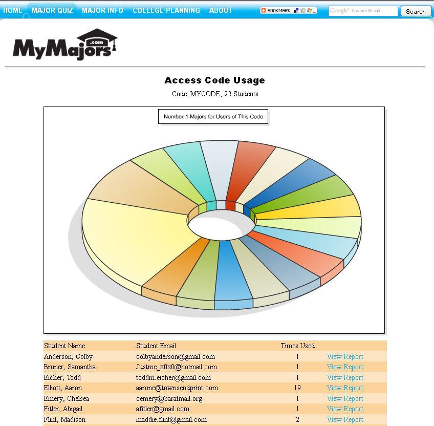 - Here you will find a list of your students who used the free access code and their advisement reports including their assessment results.